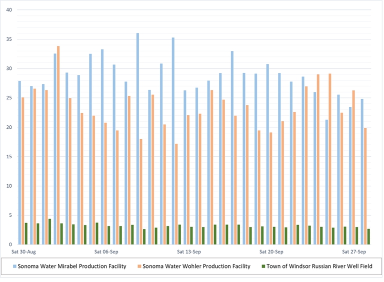 Date | Sonoma Water Mirabel Production Facility | Sonoma Water Wohler Production Facility | Town of Windsor Russian River Well Field |